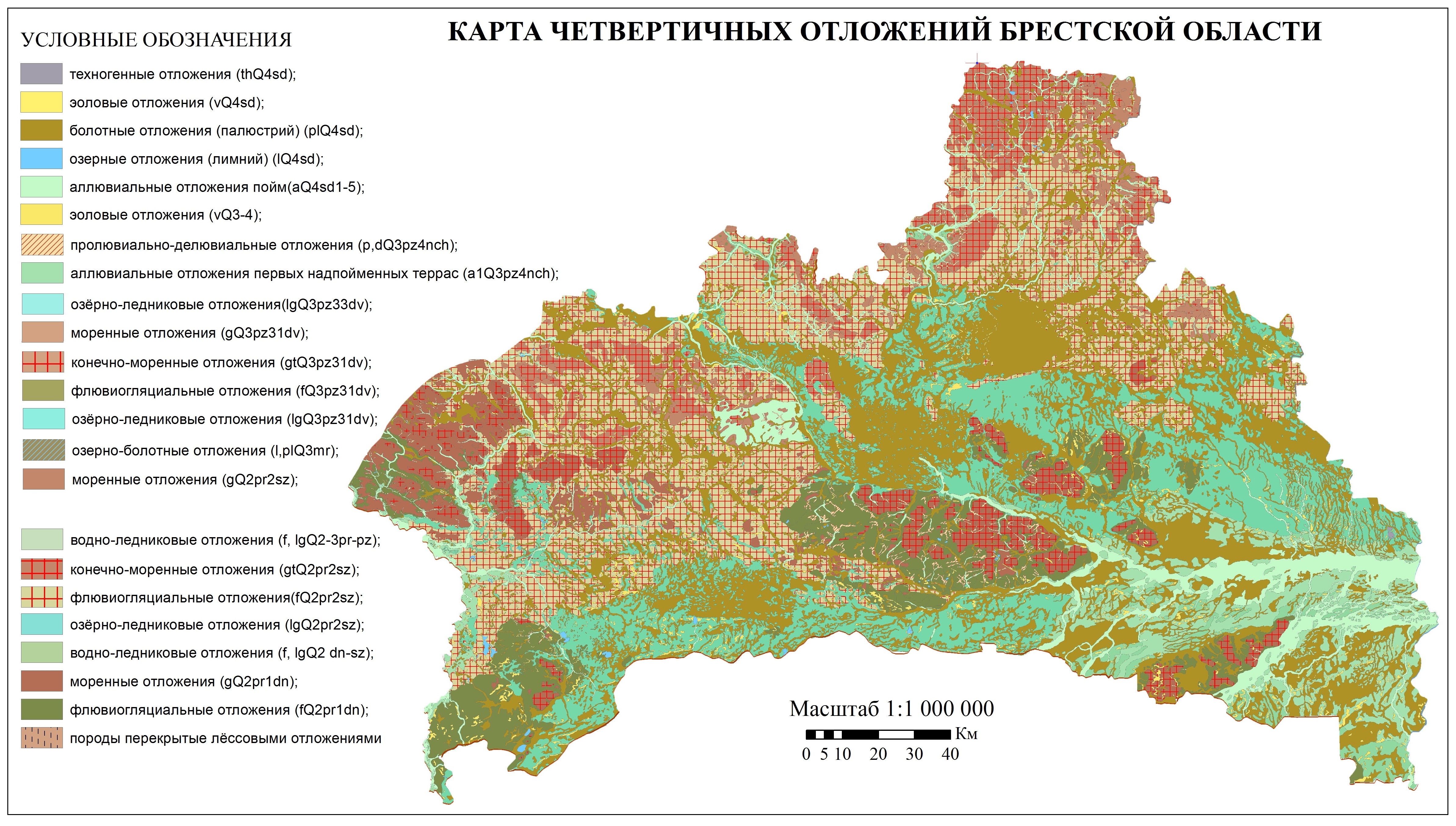 Карта четвертичных отложений Брестской области.