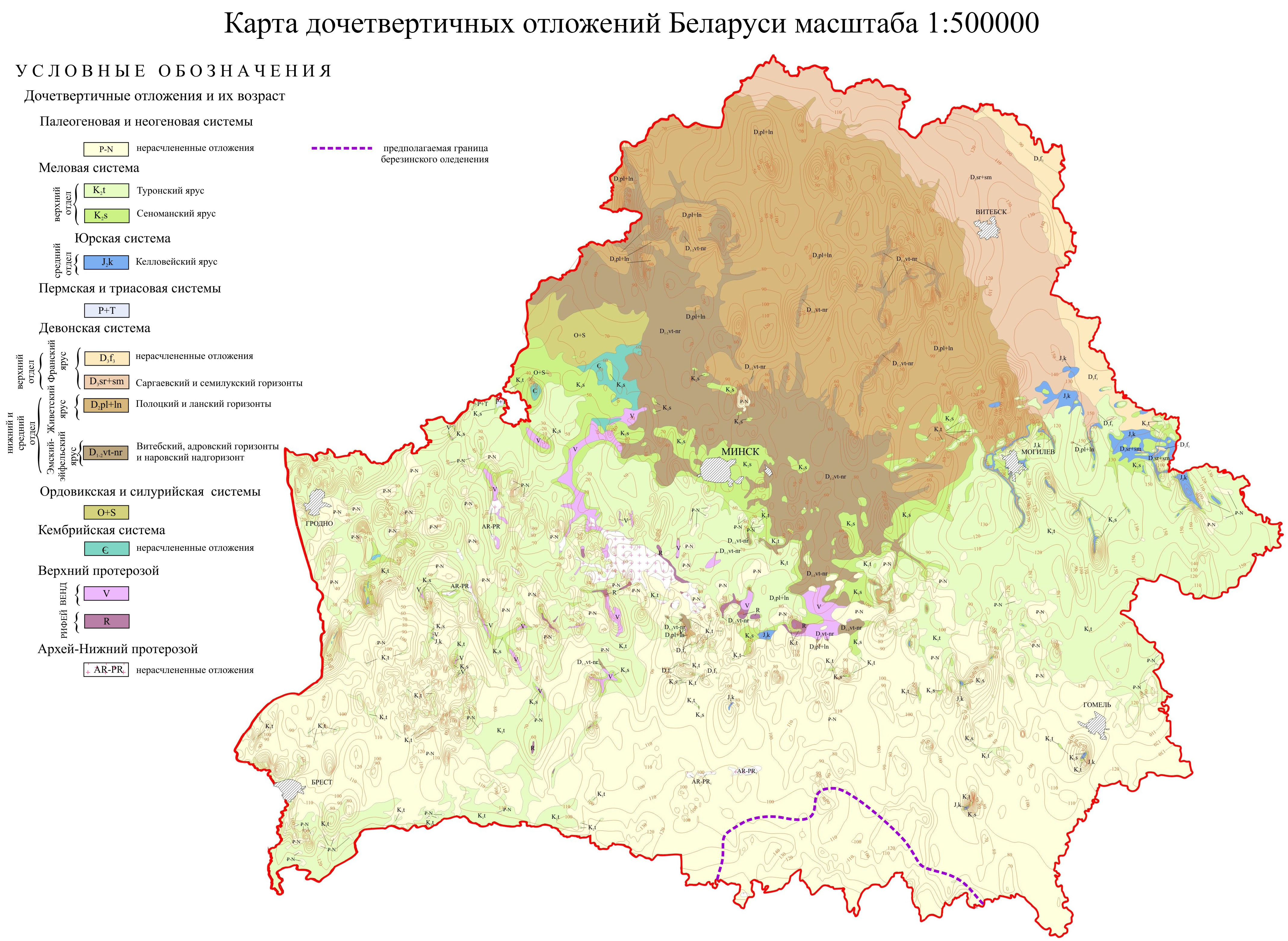 Карта дочетвертичных отложений Беларуси масштаба 1 : 500 000.