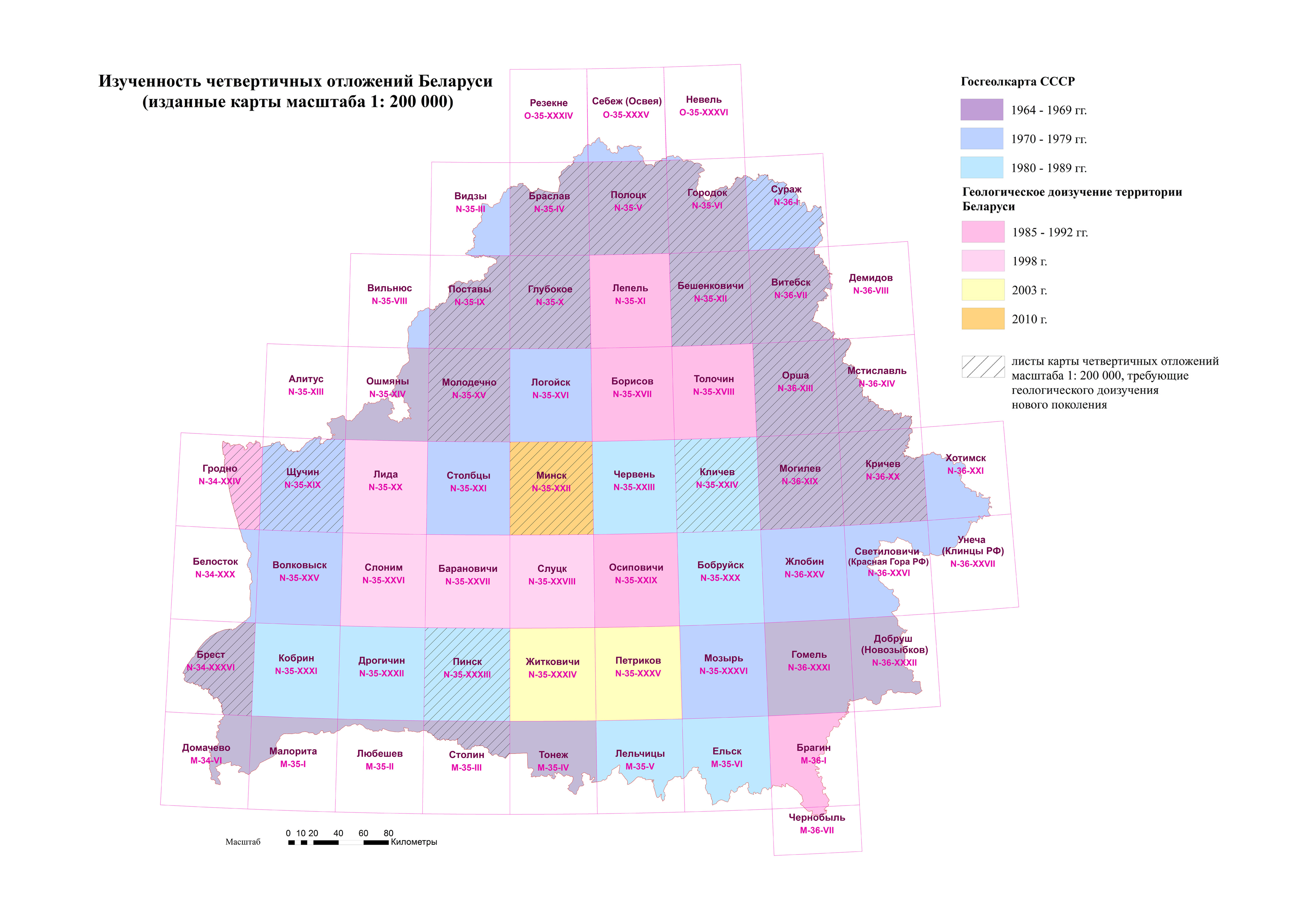 Изученность четвертичных отложений Беларуси масштаба 1 : 200 000.