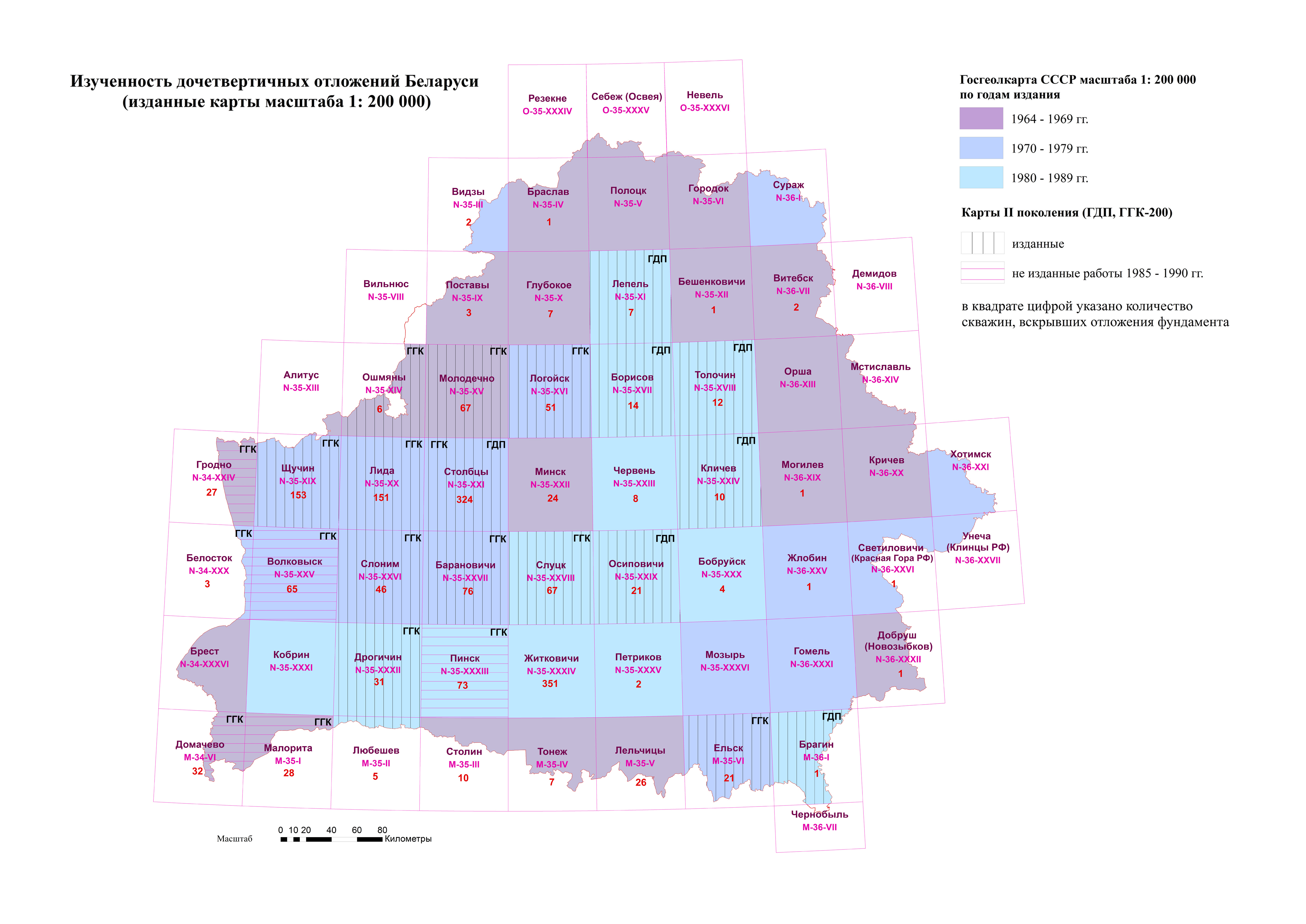 Изученность дочетвертичных отложений Беларуси масштаба 1 : 200 000.